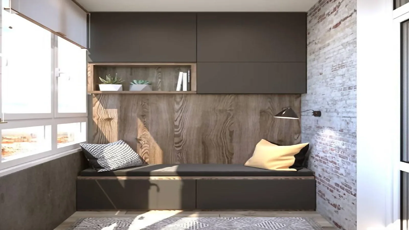 - До: Холодный угол балкона с кирпичной стеной